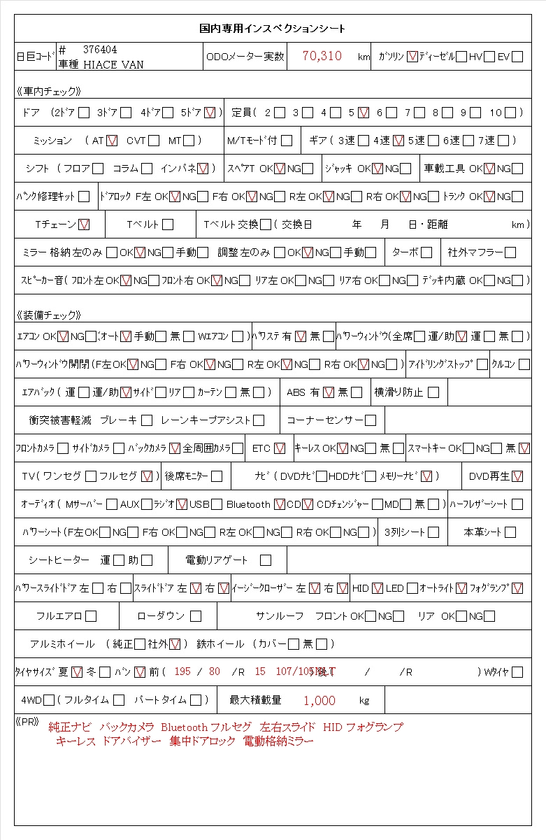 | 車検 | 車検1年付 |